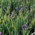 ヒオウギアヤメは、北海道、本州の中部以北に分布し、深山の湿原や高層湿原に群生している多年草です。青紫色の大きな花弁(外花被片)が3枚あり黄色い地に紫の網目の模様があります。内花被片は長さ1cmほどで、細く先が針状にとがっています。葉は剣形で根際に数個つきます。和名は花がアヤメ(文目),葉がヒオウギ(檜扇)に似ていることから名付けられました。
