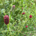 ワレモコウは、北海道から九州に分布し、田園地帯の路傍や山地の草原などに生える多年草です。葉は楕円形(卵状楕円形)で,小葉は2~6対からなる奇数羽状複葉。初夏に茎を出し、上部は枝を出してそれぞれの先端に小さい花が密集して穂状の花序を形成し、上部から咲き始めます。花弁はなく,暗紅色の4個の萼片が花弁のように見えます。近年、秋の野草の代表として知られています。