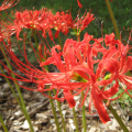 ヒガンバナは、中国原産の植物で、古い時代に日本に持ち込まれた史前帰化植物の1つです。曼珠沙華(まんじゅしゃげ)とも呼ばれる多年草で、秋のお彼岸頃に赤色の花を咲かせます。葉は花の終わった後に出て冬も枯れません。地下にはチューリップに似た球根があり球根を増やして増殖します。