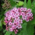 シモツケは、北海道から九州にかけての日本各地の山野に分布する落葉低木。別名、キシモツケ(木下野)とも呼ばれる。初夏に濃紅色~白色の小さな五弁花をに密生して咲かせます。古くから庭木として親しまれています。同じシモツケ属の仲間にはコデマリ、ユキヤナギがあります。和名は下野国に産したことに由来。