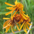 コウリンカは、本州(福島県から広島県)に分布し、高原の草地などに自生する多年草。花の色が独特で赤みを帯びた舌状花が、輪状につきます。九州の山地に自生するタカネコウリンギクの変種。