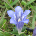 アサマリンドウは、本州の紀伊半島と中国山地から九州までに分布する多年草で。三重県の朝熊山周辺に多く自生していることから朝熊の名前が付いています。花は青紫色で、よく見ると内側には淡緑色の細かな斑点があることとリンドウに比べて小振りなのが特徴です。