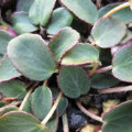 イワユキノシタ(岩雪の下)は、東海地方から紀伊半島にかけてと四国に分布し、山地の湿り気の多い岸壁に生える常緑の多年草です。根茎は横に這い、葉は卵形で厚く、荒い毛のある長い柄があります。春先に白い小花をたくさん付けけます。花は両性花で放射相称または左右相称、花弁は4から5枚で雄蕊はその2倍あります。